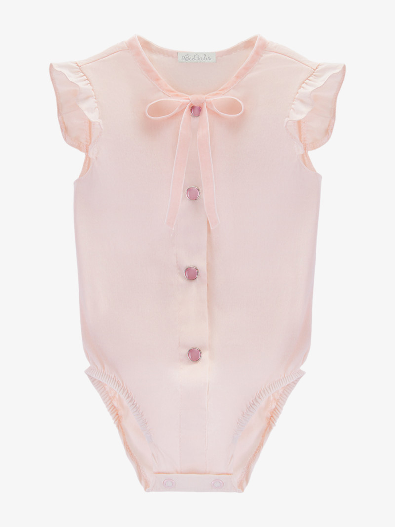 Wykonane z wysokiej jakości bawełny body, posiada niezwykłe detale: motylkowe ramiączka, atłasową kokardkę oraz perłowe guziczki. Idealne na wyjątkowe okazje.