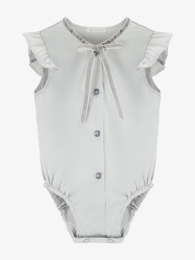 Wykonane z wysokiej jakości bawełny body, posiada niezwykłe detale: motylkowe ramiączka, atłasową kokardkę oraz perłowe guziczki. Idealne na wyjątkowe okazje.