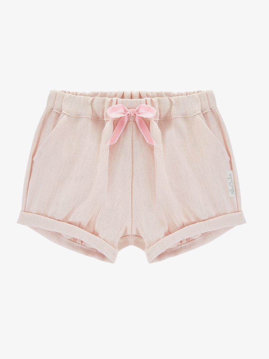 Lniane spodenki w kolorze różowym sprawdzą się idealnie w letnich stylizacjach.